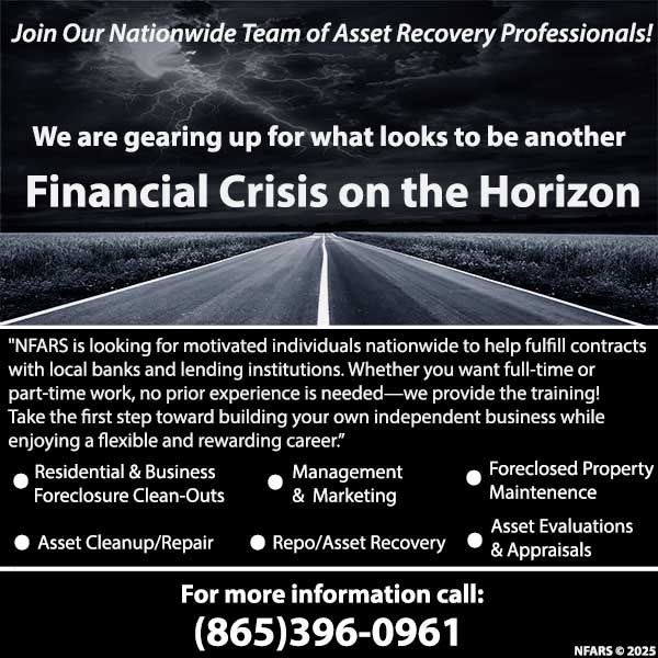 At NFARS, we are committed to providing reliable, fast, and efficient asset recovery and marketing services for local community banks and financial institutions. To achieve this, we partner with local agents who understand their communities—ensuring a secure, effective recovery and marketing process while protecting the integrity and reputation of the banks we serve. As we expand the NFARS Network nationwide, we continue to refine our expertise and resources to recruit, train, and support individuals looking to build their own businesses in this industry. Our recovery specialists either work directly with NFARS or operate as independent contractors, using our proven framework and resources to run their own successful businesses.